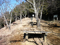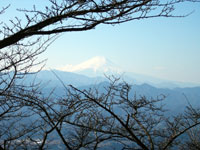神社を過ぎて尾根道の佐野川峠(石楯尾神社からの登山道の合流点)を過ぎて、緩やかに樹林帯の中を登って行くと明るく開けて甘草水広場に出る 桜の名所(10:30)此処で富士山の眺めをしばし楽しむ。