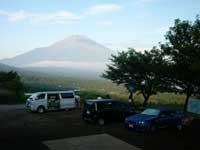 富士山の写真を撮りに早朝出発して山中湖から三国峠に向かう途中のパノラマ台から富士山を望む。すでに撮影に来た人の車が数台停めてある。ここで30分ほど撮影した後次の撮影ポイントに向かう。