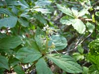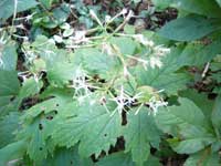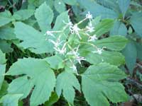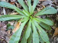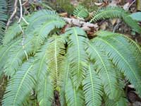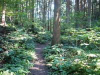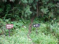 櫛形山山頂からほぼ一直線に下る尾根道で急な所もある。登山道際には花の終わったショウジョウバカマやシダ?オサバグサ?不明な植物が多く見られる。15分ほど下ったところで木に登ったサルに出会う数枚写真を撮っている間にサルは何処かに去ってしまう。此処で一人の登山者と会い、山の神コースでサルに噛まれた登山者が居た話など聞きく。