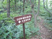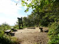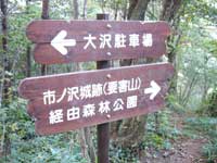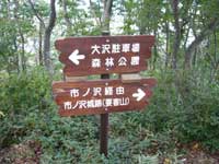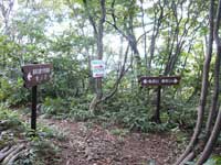 下山道は櫛型尾根を直接下る2分ほど下ると2基のベンチがあり通り過ぎると直ぐに大峰山への縦走路と関沢登山口の分岐点があり、直進の関沢登山口方面に下ってゆく。
