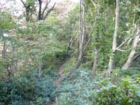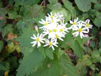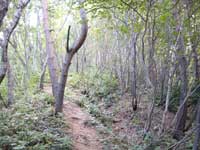 明るい尾根道の登りが続く足元にはシラヤマギク、モミジガサなど秋の花が多く咲いている。雑木林の尾根筋を更に30分ほど登ると森林公園からの登山道と合流する。