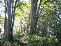 10分ほど登ると再び市の沢(七滝沢経由)からの登山道と合流、此処も視界が開けて中条の町と日本海が望める。此処まで約登山口から50分、小休止後10分ほど緩やかになった尾根道を登ると櫛形山脈縦走路(稜線)に出る。(7:57)