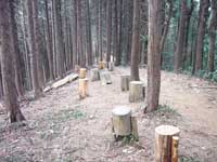 西山峠を過ぎて右手の斜面に登山道を外れて3分ほどの所に手作りのベンチがあり。何時も此処で休憩コーヒータイム。富士山の眺められる見晴らしまで足を伸ばしベンチでしばらく、