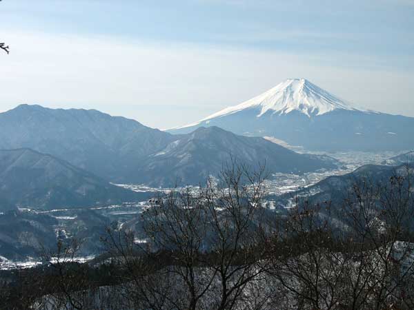 富士山の展望が抜群に良くアプローチが比較的短くて簡単に山頂に立てる事で人気のある高川山にチャレンジする中央高速で大月まで行き、富士急行線の田野倉から古宿を過ぎて大棚まで車で入ったが途中で積雪があり駐車する所も無いので古宿に戻り枝道に車を停めて再び歩いて高川山を目指す。