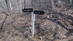 15時48分佐野川峠から甘草水を経て三国山に続く尾根道へは右、元軍刀利神社山頂への道は左(女坂)の分岐点を右に登り佐野川峠からの尾根道に出る。この時間登山者は皆降りてしまった様で一人も見当たらない。