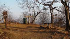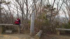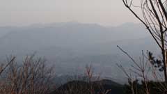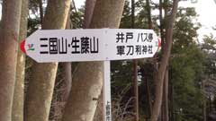 尾根道を15分ほど行くと三国山の山頂に出る。あいにく富士山は春霞の中で僅かに輪郭が確認できる状態だ。南側には陣馬山の山頂の白馬が確認できる。暫く此処で休憩後生藤山まで足を伸ばす。