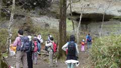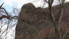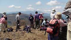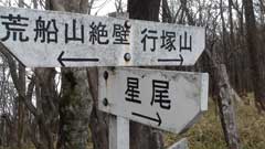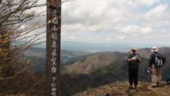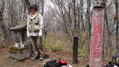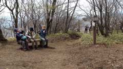 艫岩の展望台から約30分星尾峠の分岐点に出る。此処から行塚山の急斜面の登りとなり15分ほどで今回の登山での最高地点行塚山14225mの山頂に到着。山頂は狭く周りは雑木林で視界は無い。5分ほど休憩後引き返す。
