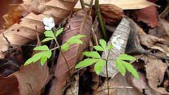 スミレとミツバツチグリの花が登山道の至る所で見られて目を楽しませてくれる。時折変わった花も現れて登山道に変化があり、苦しさを忘れてしまう。