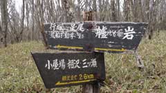 充分休息が出来たので荒船山の最高地点の行塚山(船の船尾に当たる)迄で足を伸ばす。溶岩台地の上に出来た笹原と雑木林のほぼ平坦な登山道だが起伏も僅かにあり又沢もあり水も流れている。