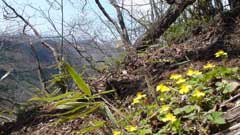 8時20分荒船山に向かって登山開始、天気は少々雲が流れて行き風があるが青空が多く気持ちよく歩ける。登山道際にはヤマエンゴサク、スミレ、ミツバツツジなどが鮮やかな色の花たちの歓迎に会い心が和む。