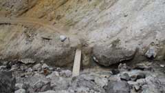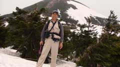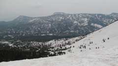 千人岱は大岳と小岳との間に出来た高層湿原の様だ。残雪が多くて今は雪の原と成っているが夏には緑の湿原と変化するのだろう。