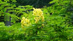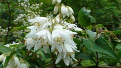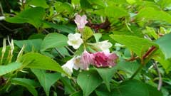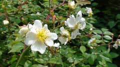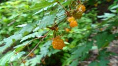 4月に訪れたときは白い花を付けていた木苺はオレンジ色の粒粒の実を実らせている。春花が咲いて丁度今頃実がなり、野苺も真っ赤な鮮やかな色の実が目立つ。 経ヶ岳林道歩き約一時間登山口の半原乗越に戻る。(14:30)車で林道を戻る途中で目に付いた木の花二枚を撮影する。今日も時期により違った花を見ることが出来る。