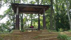 城山山頂は草地の台地で空が丸く抜けている様だ周りの3箇所には木が伐採されていて各方面の展望が望める。休憩舎とトイレ舎もありよく整備されている。