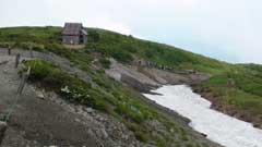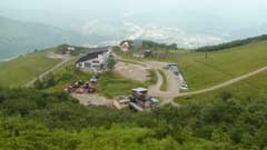 黒菱まで車で登りリフトを乗り継いで八方池山荘まで行くつもりが黒菱駐車場から黒菱平までのリフト(黒菱第三リフト)が運休で黒菱平まで歩く事にする。途中でメンバーの一人が体調を崩し30分ほど休憩後回復して黒菱平まで登り、リフト(グラードクワッド)で八方池山荘まで登る。14:20分八方池目指して尾根道を登り始める。