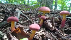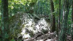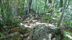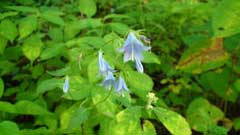 鶴ヶ鳥屋山登山口近くのロケーションの良い所から無線で呼んで見たが応答なし、直ぐに鶴ヶ鳥屋山登山を始める。道路際の階段を登り始めるとソバナの歓迎を受ける。急斜面を登り詰めて尾根筋に出る気温が30度を越えている様だが露岩が多くある木陰の登山道で登っている時は汗がにじみ出て来るが木陰の登山道は爽やかで何処でも休憩ができる。
