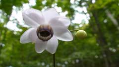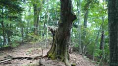 山頂を目前にした肩の当たる付近で一息入れて辺りを見廻していると10m先の斜面にレンゲショウマの花を見つける。近くに行ってみると10株ほどあり、花の見頃と成っていてカメラに収める。此処から山頂に掛けて登山道の足元でもレンゲショウマ、ソバナ、が多く見られる。写真撮影に20分ほど費やして鶴ヶ鳥屋山山頂に12:55分到着。