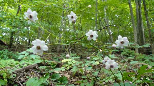 往路は上を見ていて気がつかず通り過ぎてしまったが帰りに登山口の斜面にもレンゲショウマが10株ほど群生しているのが見られる。