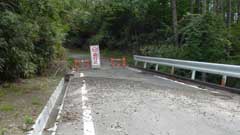 豪雨で路面に大きな溝が至る所に出来ていて普通乗用車での通行が困難な為一時通行止めにしてる様だ。林道の山側にはキオン、シヨドリソウ、フシグロセンノウ、ソバナ等が多く咲いていて花の蜜を吸う羽の色が鮮やかな大型の蝶(アサギマダラ)も多く見られる。花と蝶の歓迎で一時間ほどの林道歩きが終了して山道に入る。