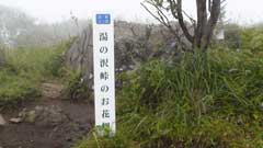 湯ノ沢山(仮の名前)で花を眺めながら昼食にする。予定ではハマイバマル迄で行く事にしていたが霧で展望が無いので大蔵高丸迄行き引き返す。