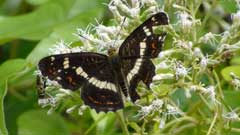 14時57分青空の見える高取山山頂に到着。時間が遅いのか誰も居ない静かな山頂で暫く休憩し展望塔に登ってみる。展望塔からの眺めは大山が薄ぼんやり確認できる程度で視界は余り良くないが眼下の宮が瀬湖や隣の仏果山が良く見える。此処でも大型の黒い蝶が飛び回っていたが花に止まらず、撮影したがピンボケで種類が特定できず。15:10分高取山を後に仏果山に向かう。仏果山までは痩せ尾根の緩やかな上り下りで途中、宮が瀬越で右手に降る登山道があるこの時期は花が少なく所々でガンクビソウを見かけるがその他の花は見られない。雨の後なので色々の種類のキノコが多く見られる。