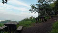 T字路(P1)を右に行き先ほど見送った高取山登山道と交差する所(P2)で林道から離れて高取山登山道を登る。此処までは登山道を歩くより林道を歩いた方が明るく多くの植物も見られるし展望も良い。登山道の方は樹林帯の中でヤマヒルが居るので要注意。念のため食塩水のスプレーを用意して登山前に足元に吹き付けて来る。尾根筋の登山道が暫く続き緩やかに尾根を巻く路を過ぎた所で馬場・大平方面からの登山道と合流。(P3)ベンチがあるので此処で小休止。