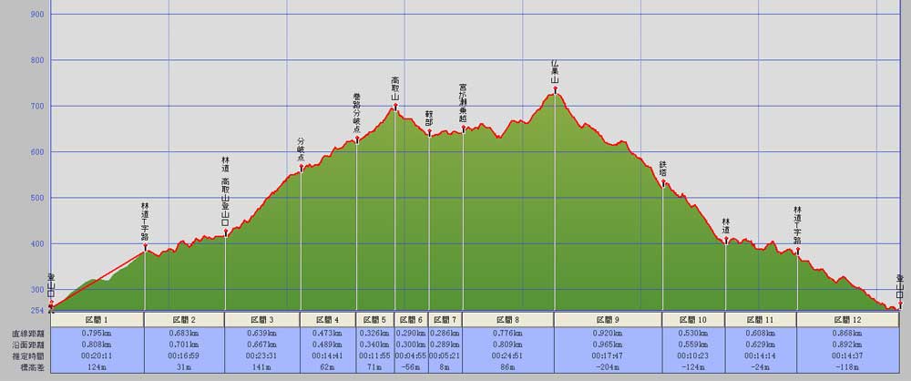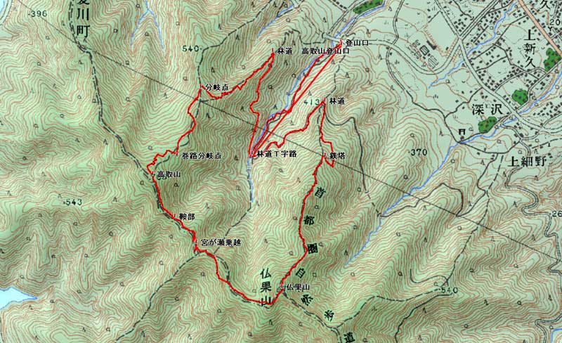 コース 登山口A→P1→P2→高取山→仏果山→P6→P1→登山口A