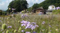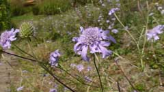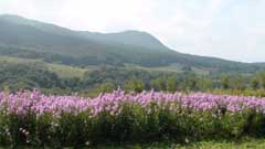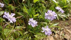 途中寄り道をしたので野反湖(富士見峠)に11:20分到着、時折雲が低く流れて行くが青空が広がり直射日光が当たるが気温は20度ほどで爽やかだ。色鮮やかなマツムシソウが咲き乱れる富士見峠から予定どうり八間山を目指す。