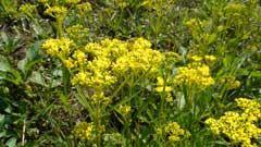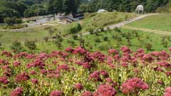 曇り空の中宿を出発、途中の暮坂峠で大正11年10月に峠越えをした若山牧水の記念碑(枯野の旅)があり当時を偲ぶ。暮坂峠を過ぎて直ぐの暮坂高原(花楽の里)で休憩、此処には山の斜面が花壇に成っていてオランダ・セダム(ベンケイソウ)10万本が満開でその他にもクリスマスローズ5万本、オカトラノオ、マツムシソウなど数に圧倒される。
