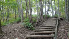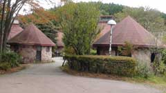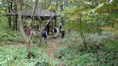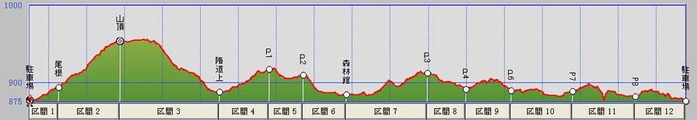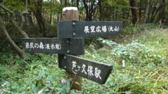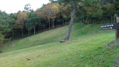 時間があるので県民の森一帯を歩いてみる。東方向に小さなピークを二つ越えると森林館と書かれた5棟ほどの施設があり(休憩舎、トイレ、展示館)南側の斜面は芝生になっていて開放感があり休憩には適した処だ。