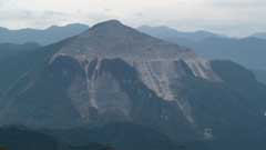 防護ネットの上部から越えようとしたが支持点が無く谷側が50m程垂直に落ちている。帰りの事もあるので引き返すことにする。隣の栃寄からの御前山登山も考えたが林道歩きで約1時間30分費やしたので山頂近くまで車で上がれる丸山を目指す。