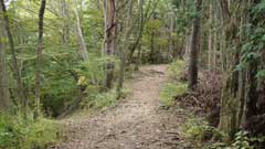 森林館まで戻り帰りは尾根筋の南側の林道を戻り。尾根根をトンネルで抜けて県民の森駐車場に戻る。予定外の登山となったが秋空の下でのどかな山歩きが出来る。