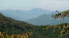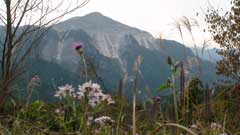 ピークを越えて降って行くと林道に出そうなので引き返す。付近一帯は山栗が多く落ちていて拾い始めたら次から次えと落ちているので一時栗広いに専念してしまう。