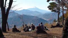 百蔵山山頂は標高1003mで富士山の展望が非常に素晴らしく富士山を眺めに登ってくる登山者が多いようだ。富士山を目前に眺めながら軽い食事をしながら至福の一時を過ごす。