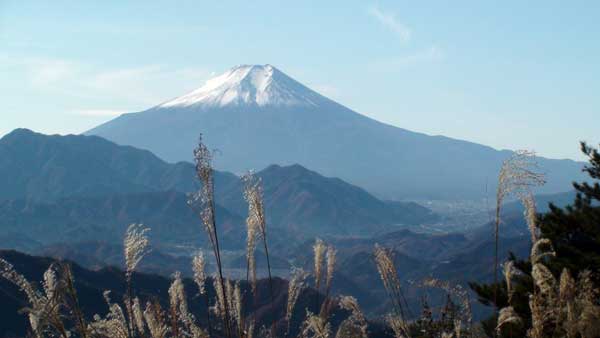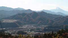 富士山が眺められる。丹沢山塊は相模原方面からの眺めと異なり焼山、黍穀山、姫次、蛭が岳、大室山と連なり丹沢山や塔が岳は蛭が岳の後方に隠れて見えない。