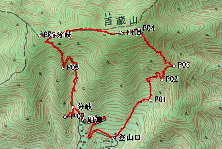 20分ほど斜面を歩き回り一汗かいてしまう。9:30分百蔵山目指して登山道を登って行く。