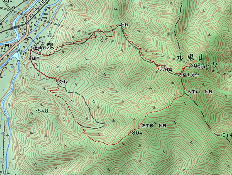 予報どうり朝外を見ると天気が良いので急いで登山準備をして6:30分九鬼山に向けて出発する。九鬼山までのコースは、道志道、秋山、20号と迷ったが出来るだけ早く行ける相模湖ICから高速を利用して大月IC迄行く。大月ICから20号線を僅かに戻り吉田方面に向かい途中のコンビニで食料を購入して九鬼山登山口に行く。