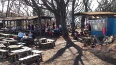 名物のなめこうどんでも食べたい所だが減量も考慮して酒饅頭を一つ頼むと発泡スチロールの箱に保温されている暖かい出来立てを出してくれる。他に登山者がなく暇なようで「依然は富士山もはっきり見えて霞がかかる様な事は無かった」と話しかけてくる。西側のベンチに越を下ろし酒饅頭を食べながらしばらく富士山を眺め休憩とする。