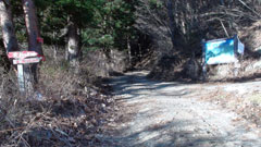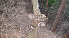 毛無山からは淵坂峠まで尾根筋の降りで登山道は枯葉で不明瞭だが約50m間隔で境界線の目印らしい赤い杭が有りGPSを確認しながら尾根筋を外れず淵坂峠まで降り、尾根筋から左に折れて大石峠登山口の有る方向に向けて山腹をほぼ水平に30分ほど歩き奥川の上流を渡る付近で道が不明瞭となったがGPS colorado
