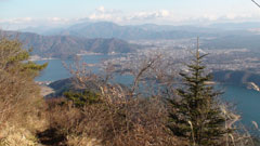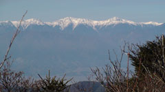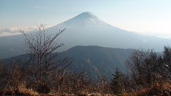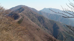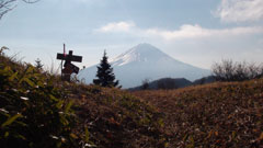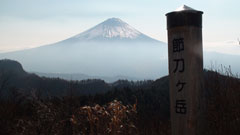緩やかな登りの稜線を左手に富士山を眺めながらの歩行でて標高1608mの金堀山を通過して行くと節刀ヶ岳への分岐があり稜線から100mほど北側に僅かに登って行くと節刀ヶ岳1736mの山頂に出る。山頂はほぼ360度の展望だが北側の一角だけ樹木で遮られている。誰もいない山頂でしばし展望を楽しみながらの山座同定。