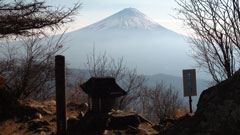 新年の初登山として富士山の展望のよい節刀ヶ岳を目標に周回出来るコースを計画。体力に余裕がなければ途中から引き返す予定で大石峠登山口まで車で入る。登山口の案内標識に毛無山への登山道の記載が無く大石峠登山口の標識があるので取り合えず大石峠を目指して登り始める。小沢に沿って針葉樹林帯の中をジグザグに登って行くと次第に広葉樹林に代わって来て枝の合間から富士山も見えて来る。