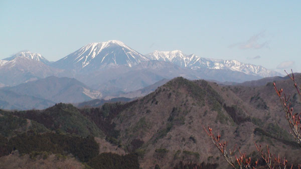 山頂は15名ほどの登山者が来ていて素晴らしい眺めを楽しんでいる。北方向には雪を被った日光の男体山が大きく見える。左方向に足尾の袈裟丸山、後方に日光白根、上州武尊、赤城山、浅間山、八ヶ岳そして富士山と天候に恵まれて360度の展望が楽しめる。今回もYAさんが用意して来たおしるこをご馳走になる。
