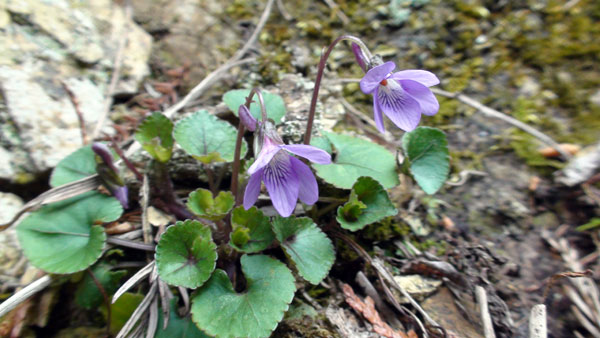 食後の運動として刈寄山まで行く事にする。山岳耐久レースのコースとなっているので登山者よりランニング者が多く走っている。刈寄山山頂からは関東平野の展望が開けていて微かに筑波山の姿が確認できる。日当たりの良い斜面にはスミレが多く見られる。