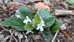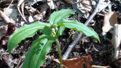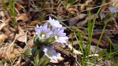 初めは本社ヶ丸から引返す予定でいたが鶴ヶ戸屋山に向かう途中の角研山から笹子駅に下る登山道を下り途中の黒野田林道を利用して変電所の所に戻る事にする。明るい稜線歩きで足元にはスミレ(白色と紫色)が多く時々フデリンドウなども見られる。
