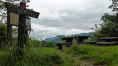 山頂で狸ほどの大きさの獣が横切ってゆく姿が見えたが撮影は出来なかった。足首に僅かに痛みを感じたので見てみるとヤマヒルが数匹靴下の上から進入している。塩水の霧吹きで靴下の所にかけて来たが効果が無かったようだ。この時期、雨上がりの登山はヤマヒルに注意が必要だ。