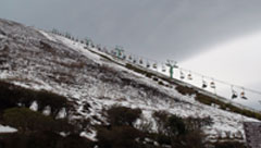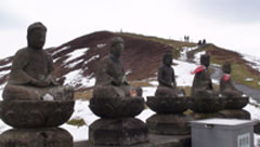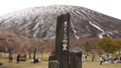 桜の花を見に伊豆高原の桜の里に来て見たが前々日の雪で開花が遅れている。めずらしく雪の残る大室山にリフトで登りお鉢巡りをしてくる。
