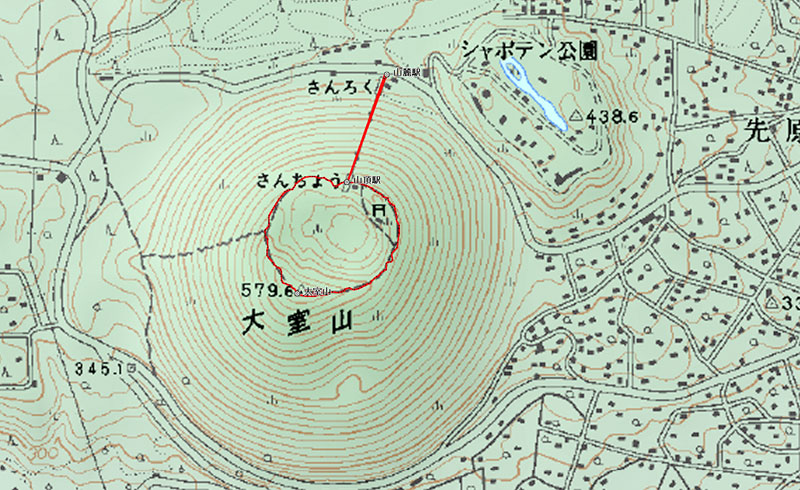 相模原⇒厚木⇒小田原⇒伊東⇒大室高原⇒桜の里⇒山頂→お鉢巡り(一周)⇒