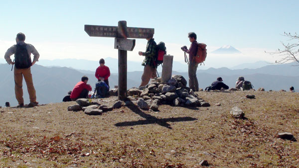 以前、川乗山に登った時、目前に大きな姿の山があり後で鷹巣山と解り何時かは登って見たいと思っていた山で念願が叶う。3方向から登山者が登ってきて鷹巣山山頂は50名ほどの登山者で賑やかになる。無線交信、展望を十分楽しんだので山頂を後にして避難小屋まで下る。降るのには未だ早いので七ツ石山方面に行ける所までゆき、途中で戻る事にして目前の日陰名栗峰を登ってゆく。