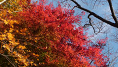 明るくなった景信山直下の急斜面を登りきると紅葉したモミジが目に付く。