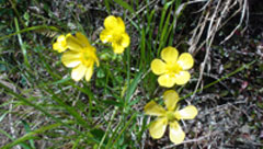 水分の補給で5分ほど休憩後直ぐに西山峠を目指す。ヤマブキソウが咲いている?疑問を感じながら期待しながら行くと西山峠直下と中沢峠直下ですれ違った御夫婦と3度逢う泰光寺山の手前にヤマブキソウが咲いている情報を再び聞いて期待感を持って行く。尾根筋の道は何度も歩いているのでヤマブキソウが咲いているのは見た事がないので半信半疑で歩いてゆくと黄色い鮮やかなヤマブキソウ?が咲いている。ヤマブキ(山吹)の花だ!!確かにヤマブキだ!群生しているヤマブキを見て急に足が重くなり、