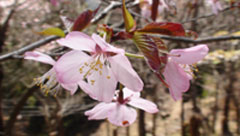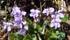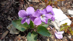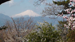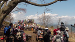 ゲートの手前から林道を外れて小仏城山に直登する山道に入って樹林帯を抜けると日当たりの良い小仏城山山頂直下の斜面に出て多くのスミレが見られる。小仏城山山頂は多くの登山者が集まっていて山桜、紫木蓮、雪柳等満開でお花見気分になれる。雪化粧した富士山も良く見えて絶好の登山日和となる。何時もは尾根筋の道を引き返しているが今回は帰りに小下沢を下るので景信山まで足を伸ばす。